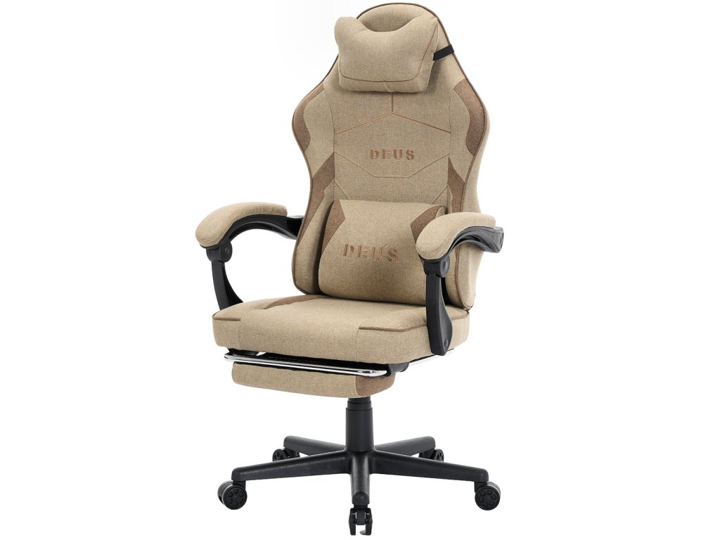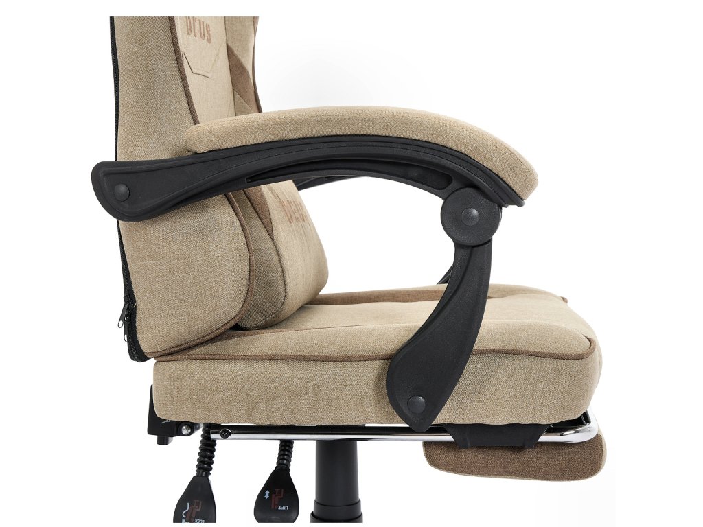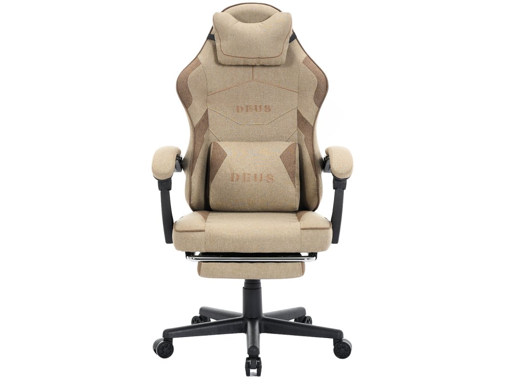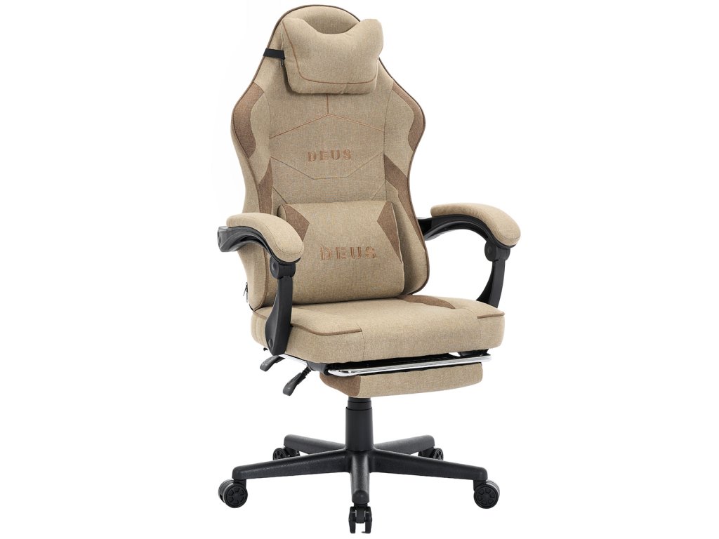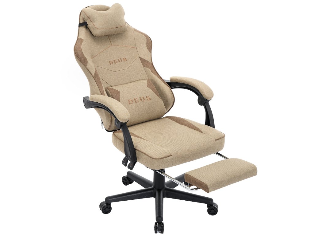 Herní Židle DEUS EDGE Beige z Látky, s Podnožkou v Základní Výbavě