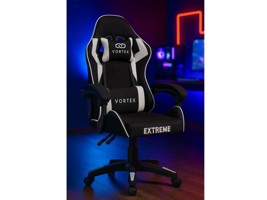 Herní židle z látky EXTREME Vortex White – komfort, styl a ergonomie pro náročné hráče