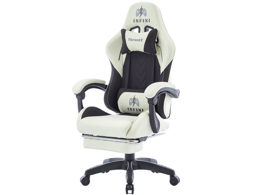 Herní Židle z Látky Infini ThrustX Cream s Podnožkou
